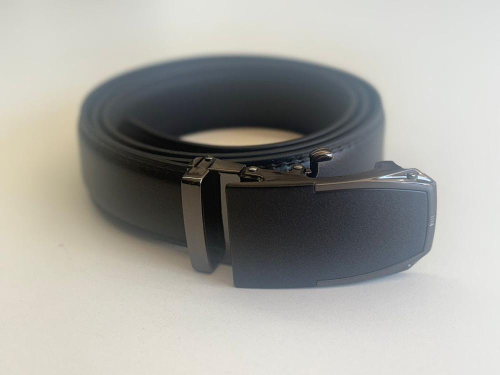 Sua fivela em acabamento preto fosco traz um design contemporâneo e discreto, garantindo versatilidade e um toque refinado ao visual. O sistema de fechamento por catraca permite ajuste preciso ao corpo, proporcionando conforto e praticidade no uso diário, sem furos aparentes.